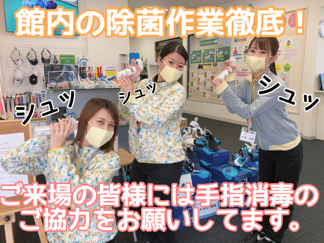 現在、グリーンステージ泉州では館内の除菌作業の徹底を