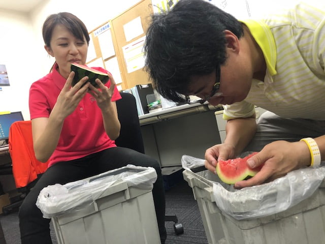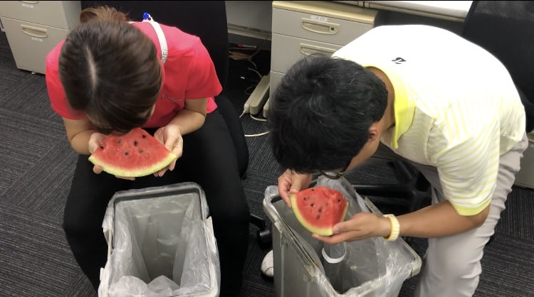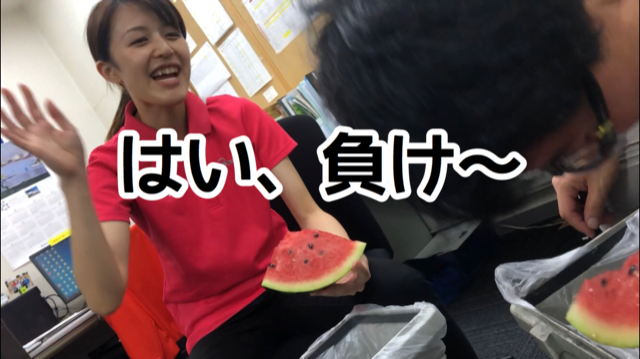 はい、はじまりました『スイカ早食い対決🔥』