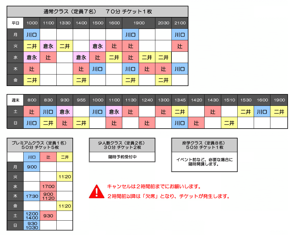 ⛳通常クラス:70分、チケット1枚、 定員7名